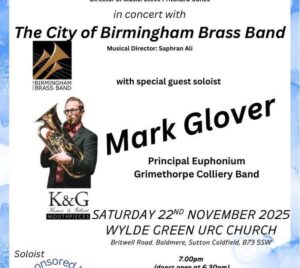 The City of Birmingham Brass Band will be appearing as guest performers in a concert hosted by the West Midlands Police Brass Band. The evening will also feature special guest soloist Mark Glover (Principal Euphonium, Grimethorpe Colliery Band). This is a relaxed, informal concert with a varied programme of brass music. Free entry • Retiring …